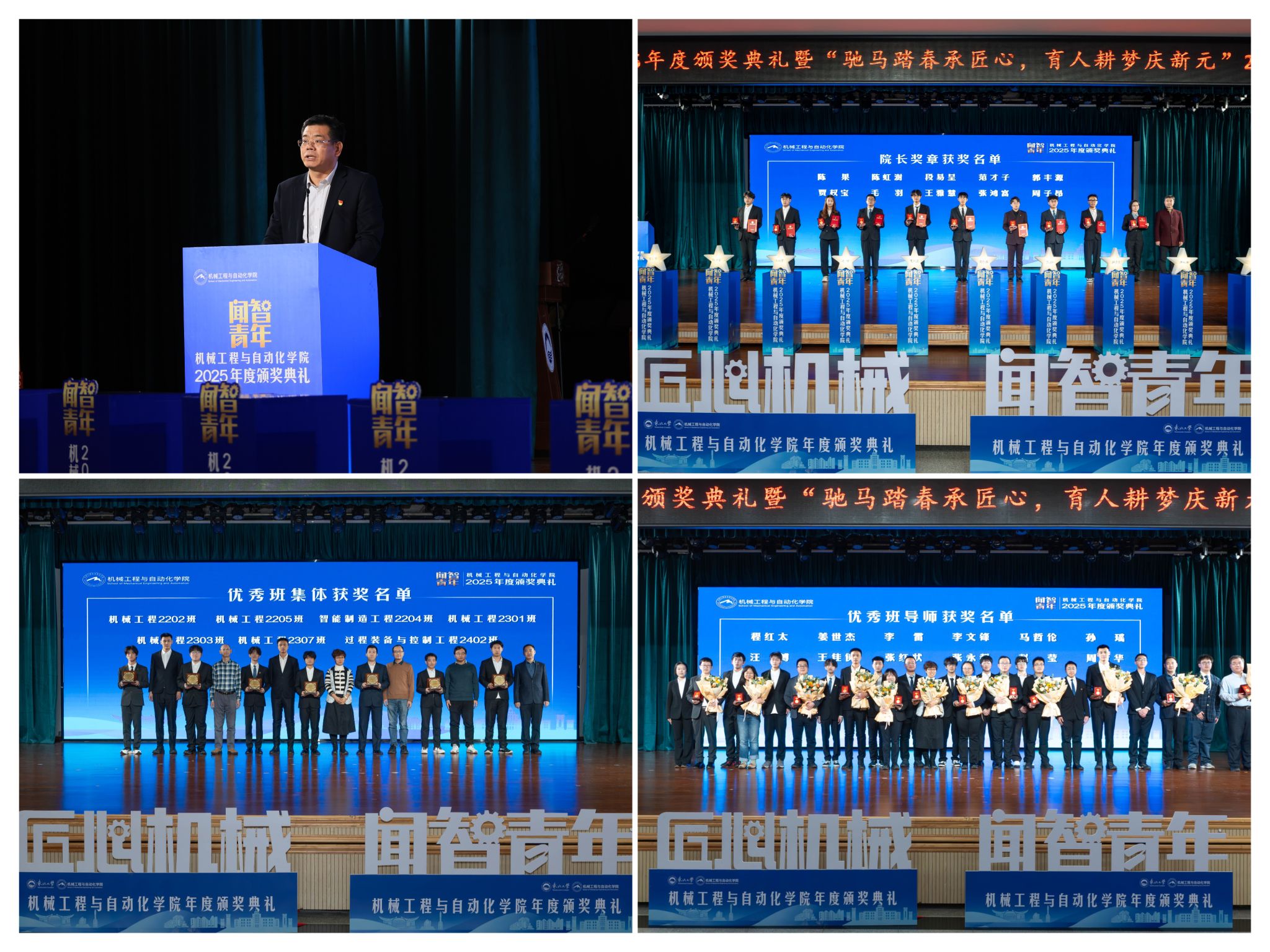 据悉,“闻智青年”是机械工程取从动化学院出力打制的文化育人品牌。本次颁仪式既是年度的集中展现,也是典型树立、激励朝上进步的主要平台,旨正在指导全体学生以先辈为楷模,坚想、夯实专业根本、锻制立异能力,勤奋成长为具有家国情怀、全球视野取创制活力的杰出工程人才,为学校“双一流”扶植和高质量成长注入芳华力量。 学院党委郝建山正在致辞中系统回首了一年来学院取得的主要成绩。学院积极办事国度计谋,投身深度金属矿智能开采纳配备全国沉点尝试室扶植,并正在环节科研范畴实现标记性冲破,获得国度严沉专项支撑。学院成功引进增材取激光制制范畴领军团队,稳步推进学校新增学位点扶植,为久远成长奠基根本。正在人才培育方面,研究生学术丰盛,正在“挑和杯”“中国国际大学生立异大赛”等多项赛事中斩获国度级项,结业生就业率持续连结高位,郝建山阐释了“闻智青年”品牌的育人内涵,勉励全体师生胸怀“国之大者”,将小我成长融入“制制强国”计谋,过硬本事,怯于立异创制,勤奋成为担任平易近族回复大任的时代新人。 副院长罗忠表扬决定。颁环节分三轮顺次进行。起首颁布的是“院长章”,刘云飞为毛羽等10名正在专业进修、科技立异、社会实践等方面表示杰出的学生颁布章。随后颁布“优良班集体”项,班导师代表为7个正在班风、学风及凝结力扶植中成效显著的班级颁。最初,仪式聚焦育人一线论理学生代表向获评“优良班导师”的教员们献上鲜花取荣誉证书,表达诚挚感谢感动。